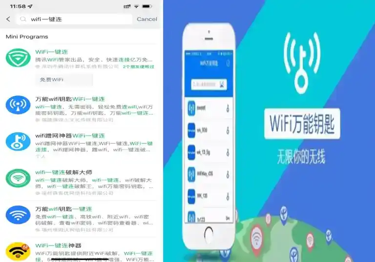 WiFi One-Key Connect is an official mini program produced by Tencent.