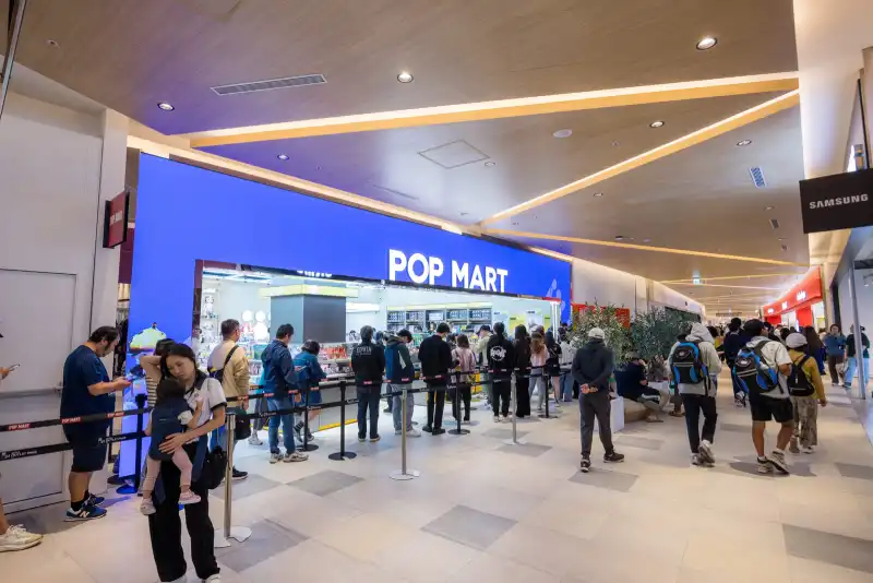 The brand’s “big box” model sets it apart. Stores resemble toy department outlets, stocking blind boxes, anime figurines, plushies, model kits, and building block sets. Locations feature licensed IP displays, such as Sanrio and Pokémon, photo areas, and cafes, attracting collectors and casual shoppers.