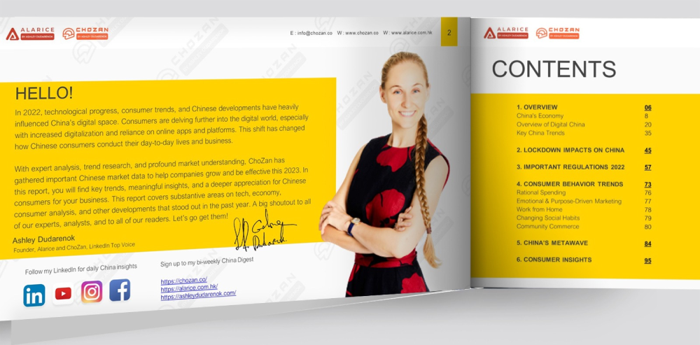 ChoZan’s expert analysis and market understanding have enabled us to compile the most relevant data and trends for businesses looking to succeed in China in 2023. The report is a must-read for anyone seeking to navigate the Chinese market with actionable insights, especially in the realms of digital marketing, e-commerce, and consumer behavior.
